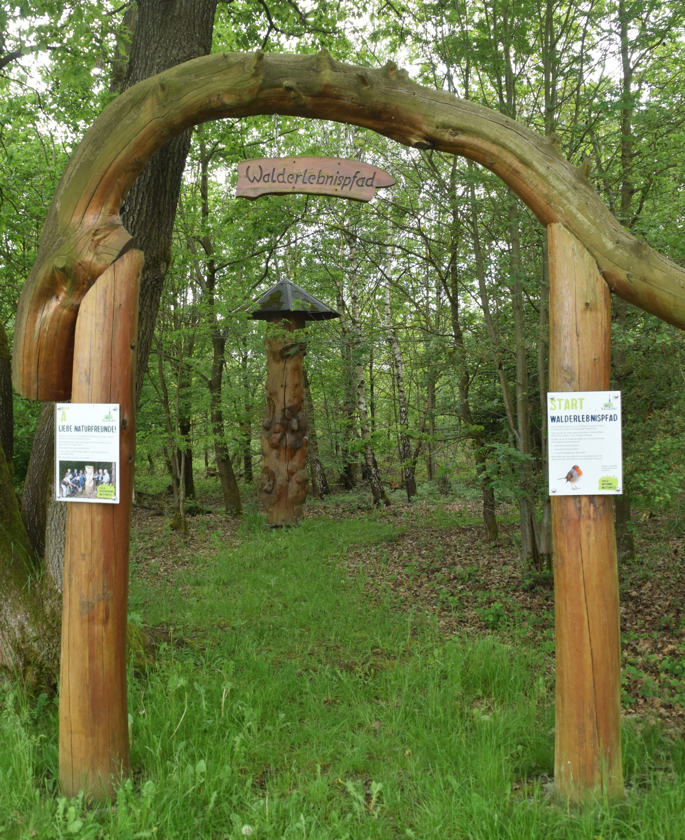 Der Westenfelder Walderlebnispfad umfasst folgende Stationen, an denen man den Wald erlegen kann: Station 1: Baumgarten / Station 2: Wasserwerk / Station 3: Bodenfenster / Station 4: Dendrofon / Station 5: Hochsitz / Station 6: Specht / Station 7: Hörrohre / Station 8: Insektenhotel / Station 9: Baumgitarre / Station 10: Fuchsbau / Station 11: Baumtelefon / Station 12: Barfußparcours über unterschiedliche Waldböden