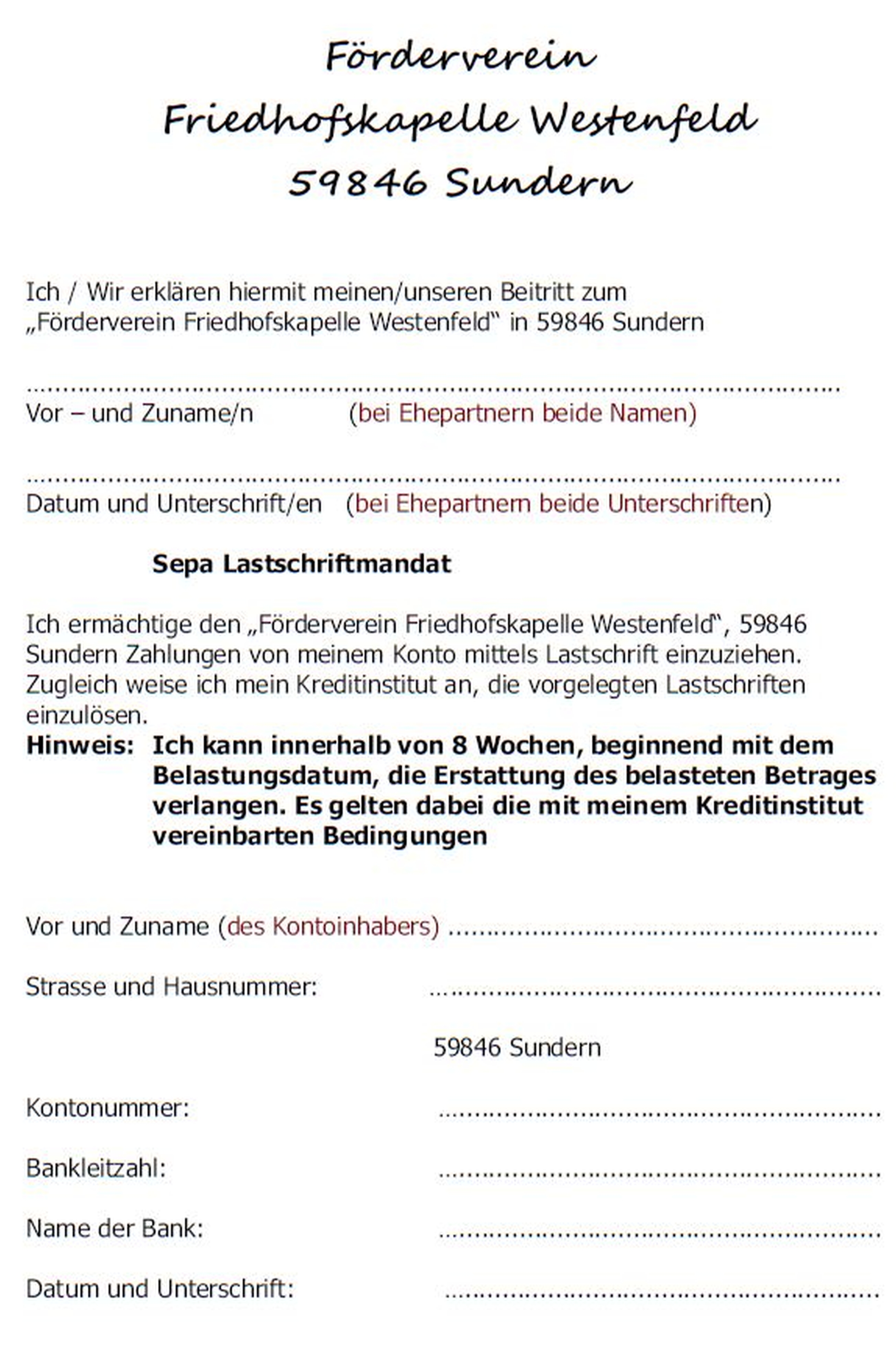 Beitrittsformular zum Download